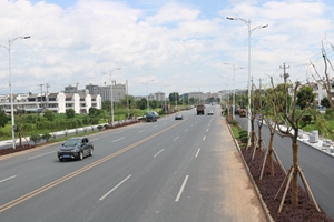 全線為三塊板形式,道路路幅寬40m,全線機(jī)動(dòng)車道21m,非機(jī)動(dòng)車道2*4.5m,綠化帶2*2m,人行道2*3m。